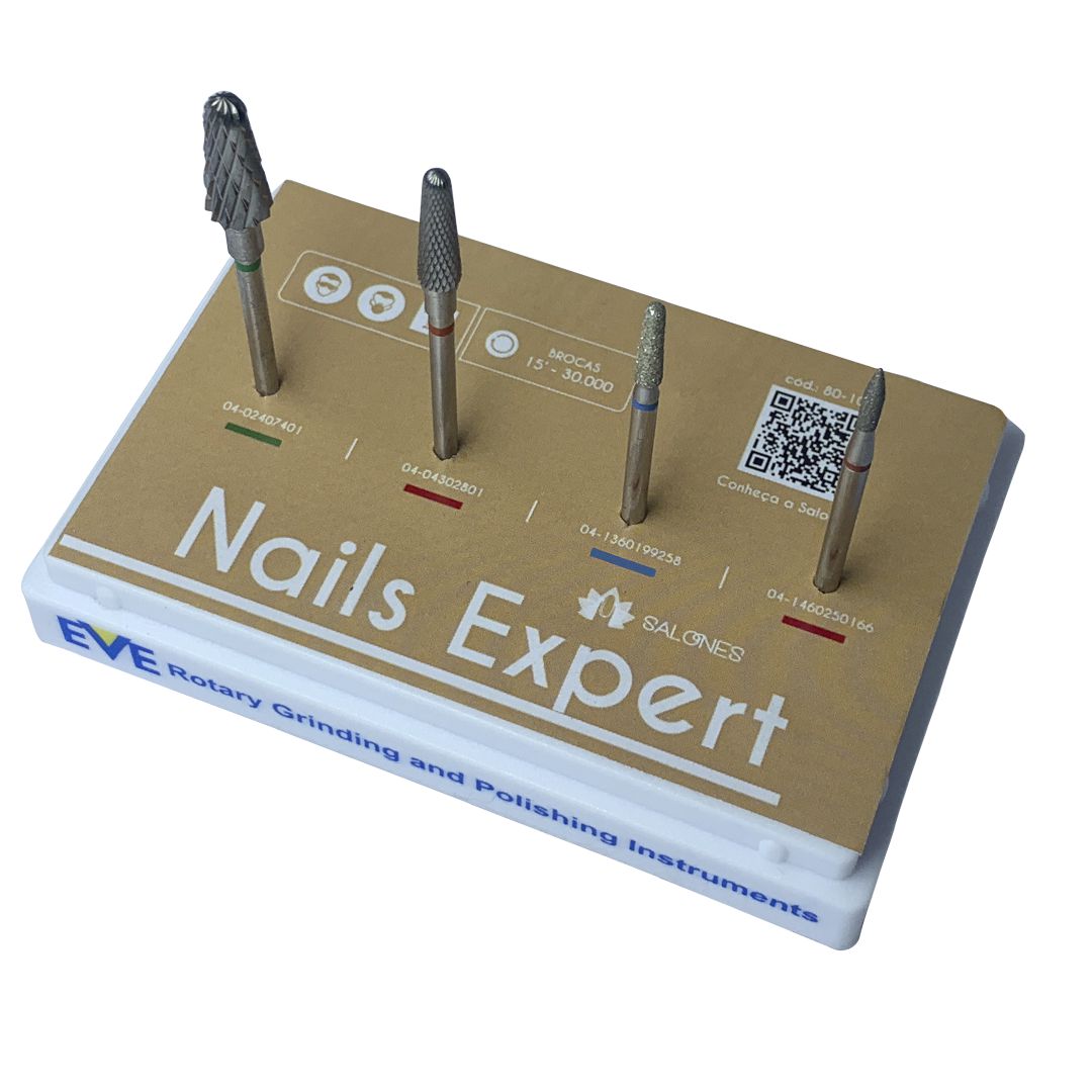 O kit de Brocas Salones Nails Expert possui 4 brocas Turbocut fabricadas na Alemanha sob um rigoroso critério de qualidade, sendo elas: